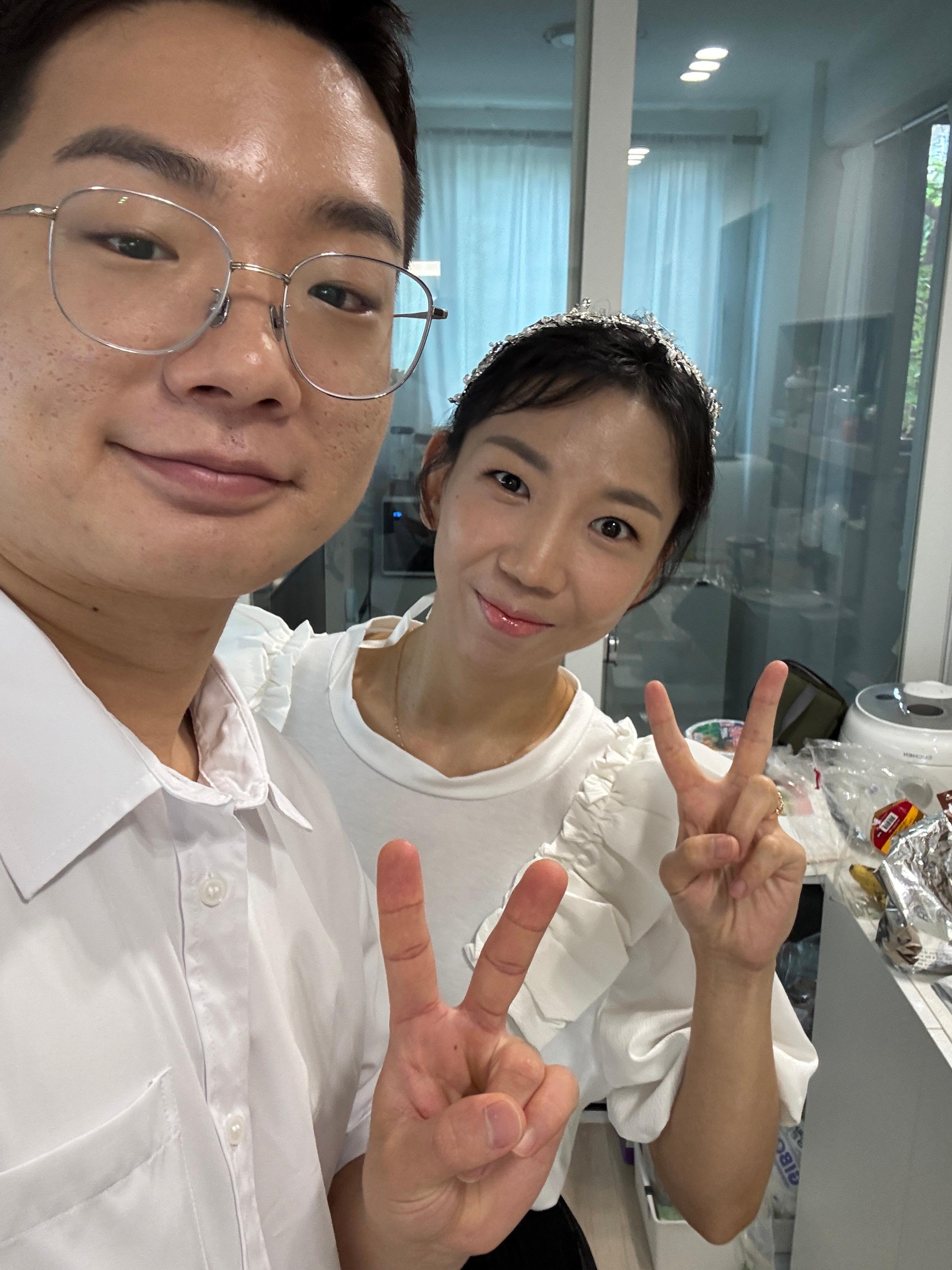 암튼~~~ㅎㅎ 이렇게 선생님 한 분이 큰 캐리어 하나 가지고 오셔서 세팅해 준 후 바로 화장해 주시고 머리도 해주셨는데, 난 거의 1시간? 소요된 것 같고 남편은 10분...?🤣 남자들은 되게 빨리 끝난다고 하시더라구~~